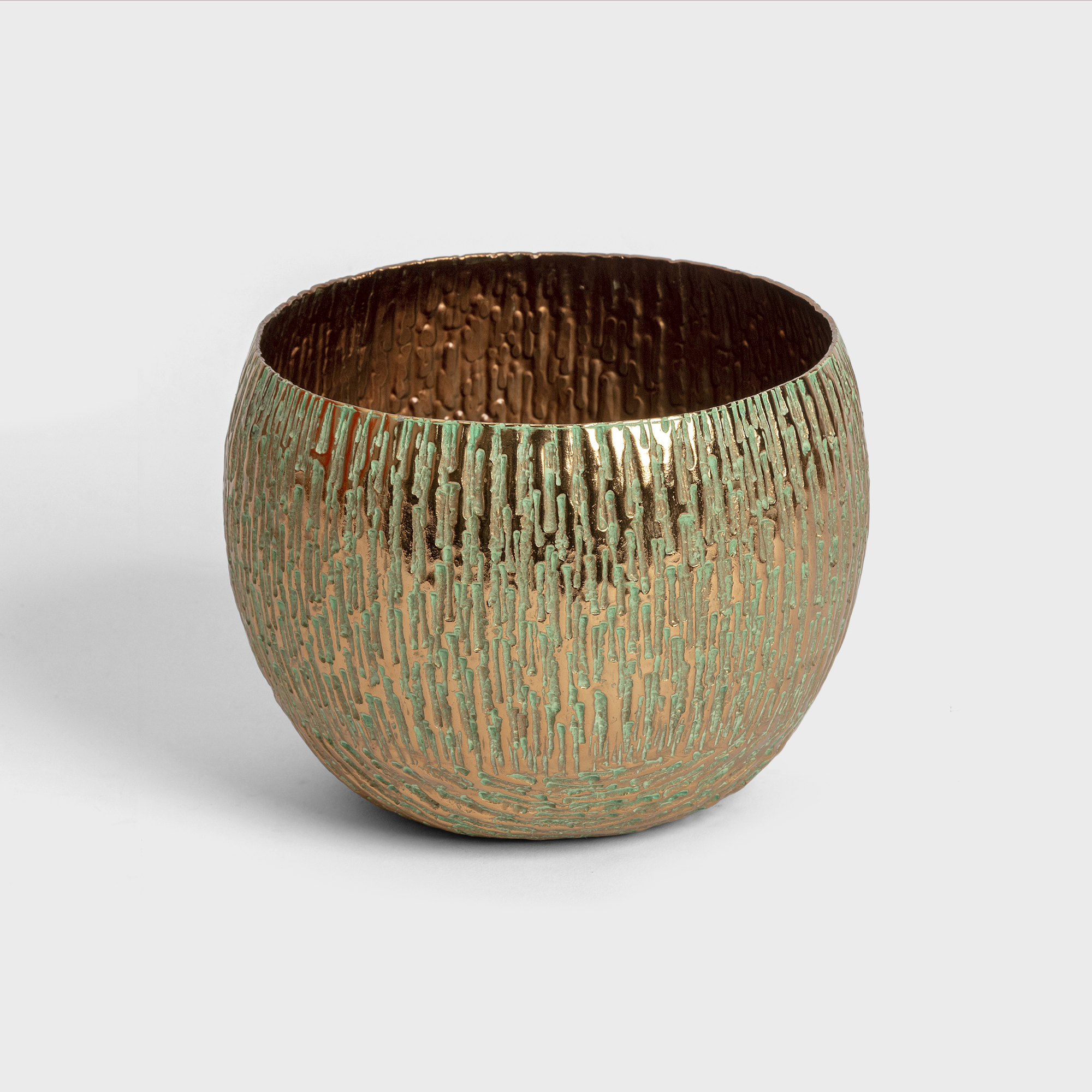 Handcrafted bronze vase with a turquoise finish.