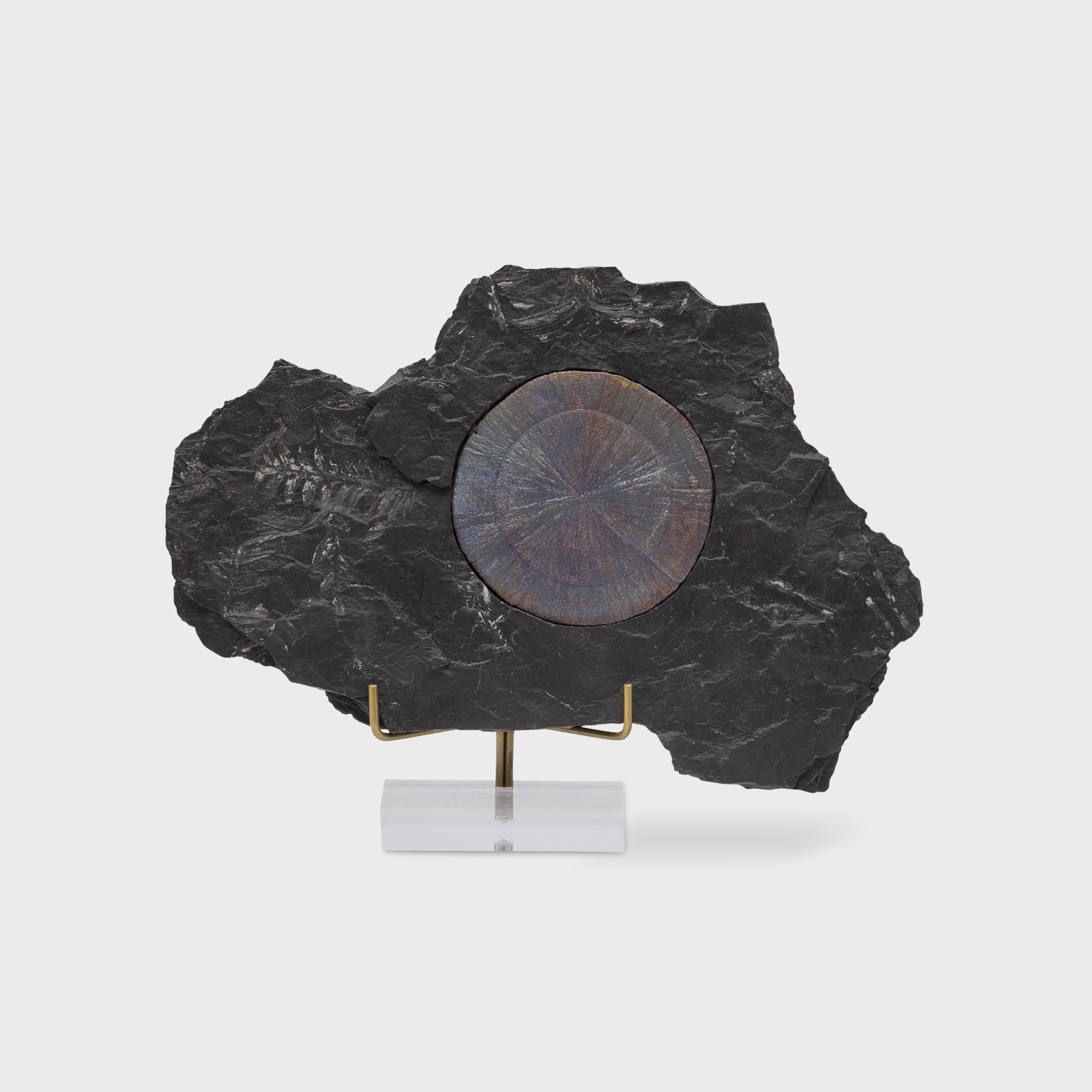 Pyrite sun fossil slate ornament.