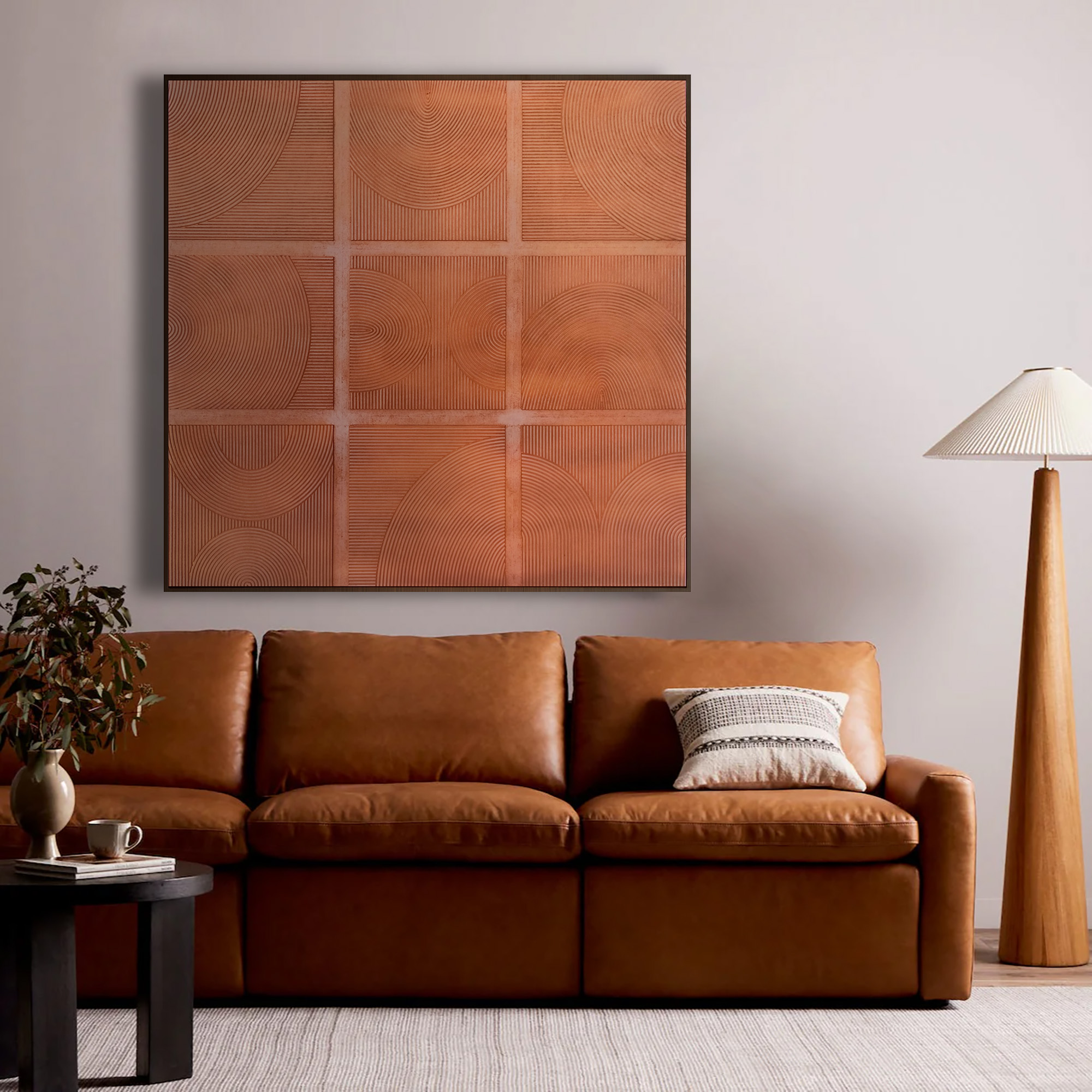 Wall art with dark bronze metal frame